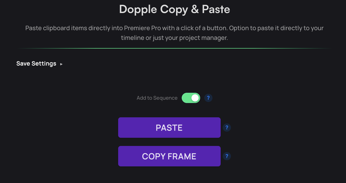 Need to share a quick preview or create a thumbnail? Dopple lets you copy your current program monitor frame directly to your clipboard. Paste it instantly into Photoshop, Slack, Discord, or anywhere else.