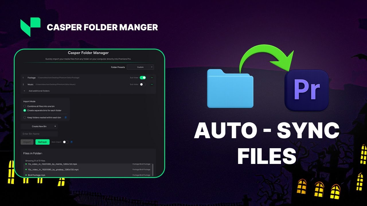 Automatically sync your media folders with premiere. Download/Upload files to your computer and have them automatically imported once a file is added.